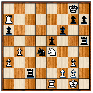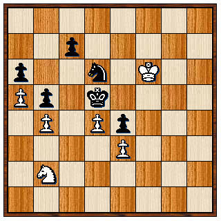 Maar nu kan wit plotseling winnen: het paard gaat via e4 en f6 naar h7, de zwarte koning moet promotie van de h-pion verhinderen en wit kan c6 en b5 veroveren. De rest is een fluitje van een cent.