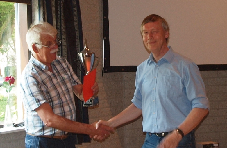 Overigens hadden we nog een speler die, voor de organisatie ongemerkt, al 4x op een beker voorkwam. Op de Roeland ’79 beker (’79 duidt op het jaar waarop de beker voor het eerst uitgereikt werd) stond zijn naam voor het eerst in 1984, daarna in 1991 en 1992 en 2013 vermeld. Het is dan ook niet verwonderlijk dat Willem Spaan, want dat is de betreffende speler , na zo veel jaren van meespelen dit jaar dan toch de trotse “definitieve” bezitter werd van genoemde beker.