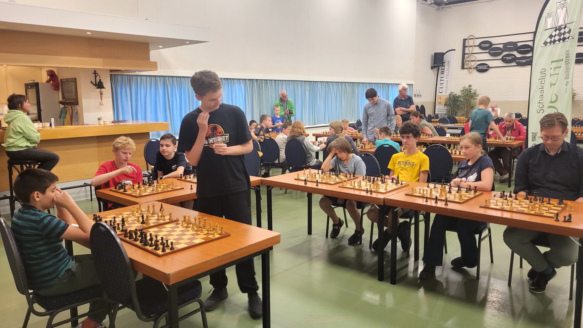 Het 42e VOGES OPEN schaakkampioenschap van Hillegom is op vrijdag 7 november 2025 in Eetcafé Zomerzorg, weer van start gegaan. Met 45 deelnemers (22 in groep A en 23 in groep B) zijn we toch weer de weg omhoog ingeslagen. Weet u het nog? Vorig jaar slechts 13 spelers in groep B, dus een soort van smeekbede om hier iets aan te doen, heeft bewust of onbewust gewerkt. Het maximum aantal van 50 (= 25 tafels) voor A en B gezamenlijk is in zicht dus er is nog werk aan de winkel.