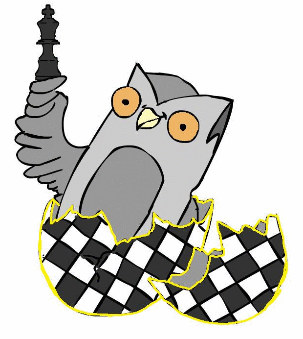 Met een record aantal jonge uilen vlogen we naar Voorschoten. Sommigen van ons hadden speciale voorbereidingen getroffen. Lawrence had een prachtig schaakboek meegenomen met heel veel leerdiagrammen. Vivian had een prachtig T-shirt aan met een eigen uil ontwerp erop. Dit ontwerp had ooit de meeste stemmen om het jeugd T-shirt van De Uil te worden voor de jeugd. Het is er nog steeds niet van gekomen, maar het blijft een leuk ontwerp.