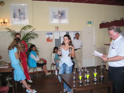 Zaterdag 17 juni was de jeugd weer van heinde en verre toegestroomd om in verschillende leeftijdsklassen te proberen het kampioenschap of in ieder geval één van de vele bekers te bemachtigen. En dat de jeugd er ondanks vele toernooien het WK-voetbal en soms sub-tropische omstandigheden veel voor over heeft bewijst met name de deelname van spelertjes uit Leeuwarden en Tilburg. 24 schakertjes trokken op de 64 velden ten strijde.